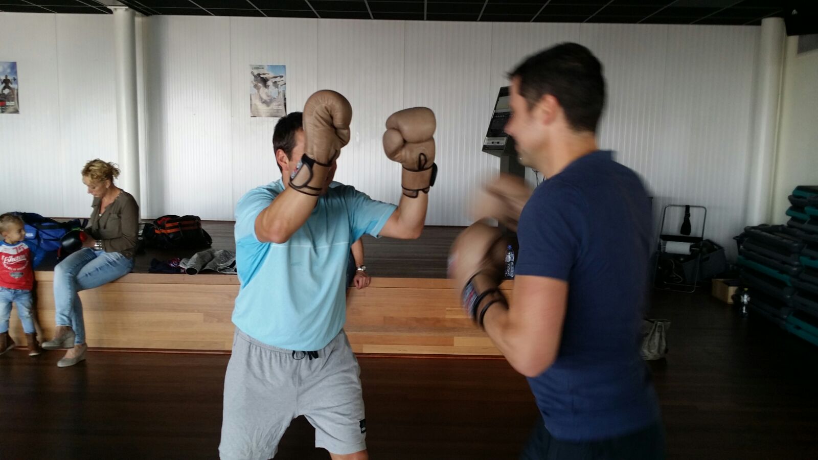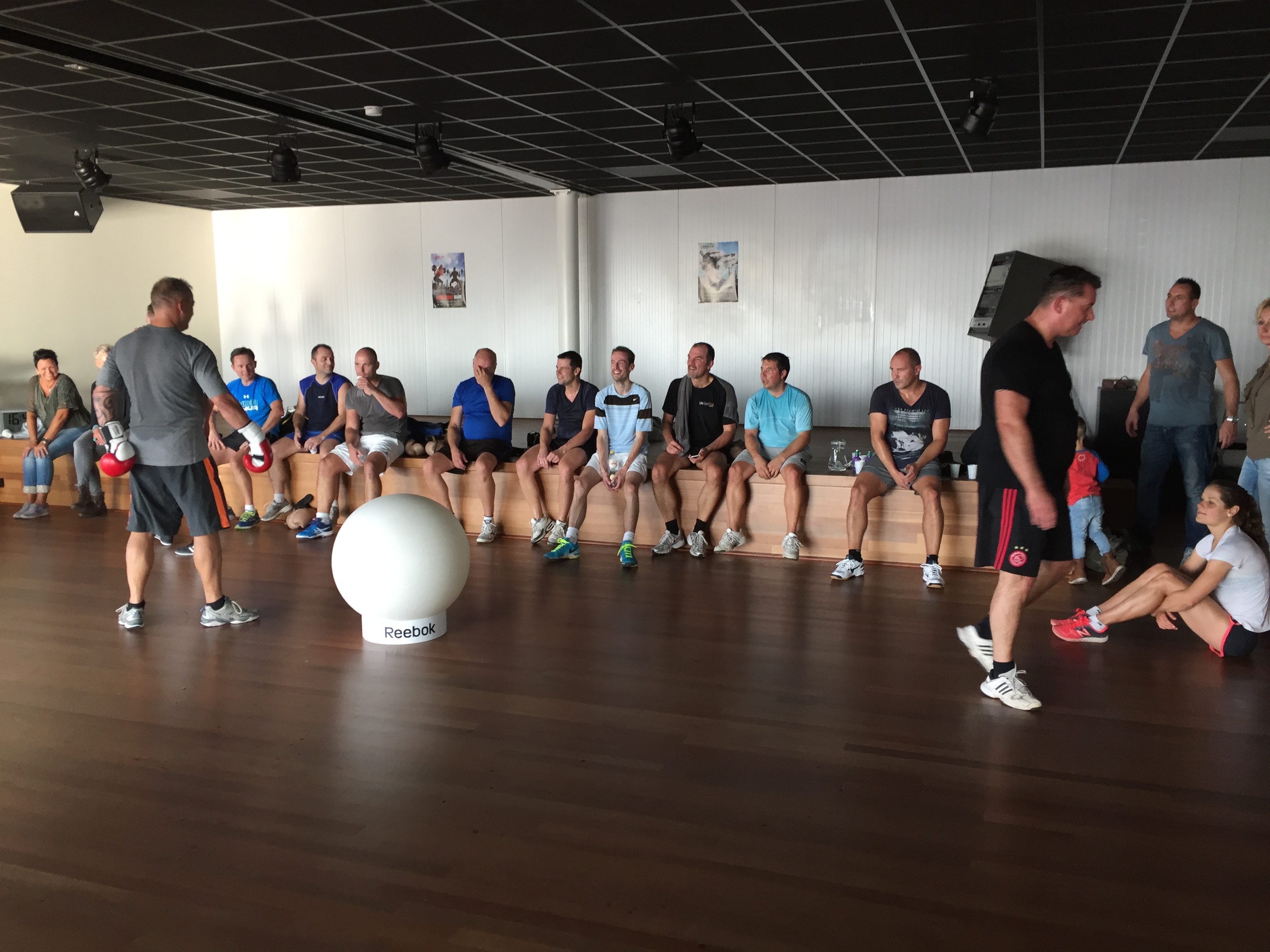 Met een dertigtal sponsoren, bestuursleden en betrokkenen kwamen we bij Vitae bij elkaar. Aito was daar samen met zijn Weerter trainer en een (kick) boks-maatje. We werden meteen aan het werk gezet. Leuk de basisbewegingen van het boksen doorgenomen. Directe stoot, hoekstoot en opstoot… Ik kreeg steeds de neiging om mijn tegenstander met een mooie schouderworp op de grond te gooien…maar dat mocht niet. Aito en zijn boks-vriend gaven nog een lekkere demonstratie van een paar ronden…wat een klappen.