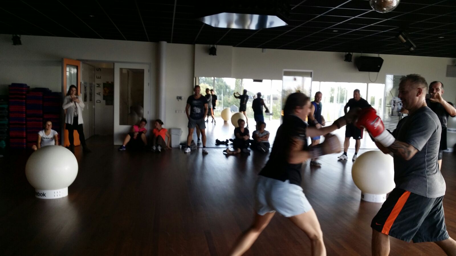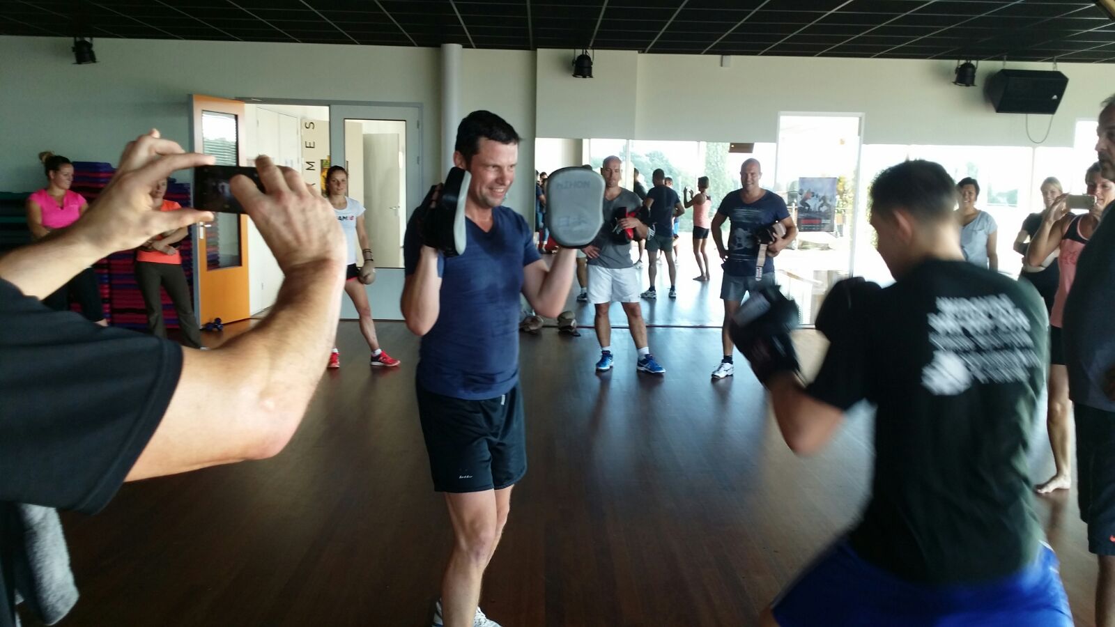 Leuk hoor allemaal van die fanatieke volwassenen. Maaike Caelers en ik hebben er hartelijk om geglimlacht. Er waren een paar stoere mannen en vrouwen die het wel aandurfde een partijtje boksen met Aito… Conclusie…ik heb niet meteen het grootste bokstalent…maar heb wel een erg leuke workshop achter de rug”!