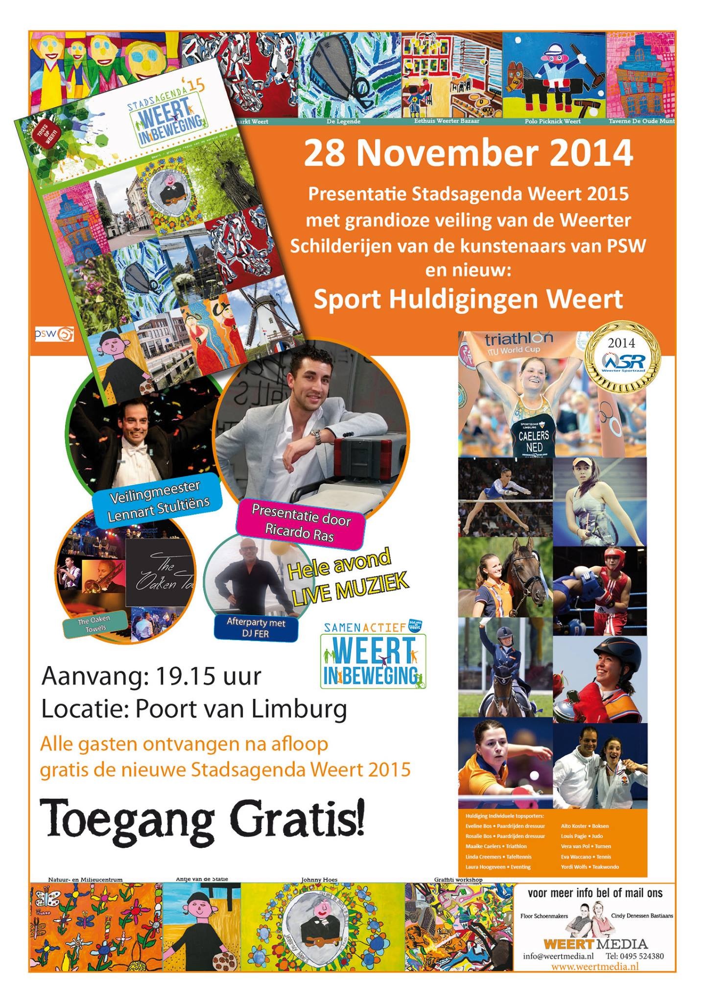 Vrijdag 28 november 2014 vond in de Poort van Limburg de presentatieavond plaats van de Stadsagenda Weert in Beweging 2015. Naast het presenteren van de agenda werden de Weerter sporthelden gehuldigd die afgelopen jaar op bijzondere wijze topprestaties hebben geleverd.
