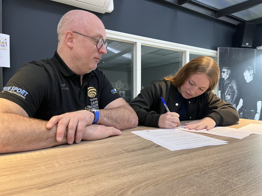 Onder het toeziend oog van haar familie, bestuursleden van Gaan voor Goud en Ruud Danklof van Blankers Schoon, zetten Demi en voorzitter van Gaan voor Goud, Thijs Zusterzeel, hun handtekening onder de samenwerkingsovereenkomst. “Het is geweldig dat we een ambitieuze Weerter BMX-ster mogen ondersteunen en haar kunnen faciliteren bij de sport die ze zo graag doet. Ze helpen haar waar het maar kan om haar doelen te bereiken”, aldus de trotse voorzitter. Ook Demi is verheugd met de ondersteuning; “Het mooie aan sport is dat je jezelf altijd kunt blijven verbeteren. Je kunt sneller worden, sterker worden en groeien op mentaal vlak. Mijn doel is om mezelf elke training verder te ontwikkelen: sneller worden op de baan, mijn techniek verbeteren en mentale obstakels overwinnen.”