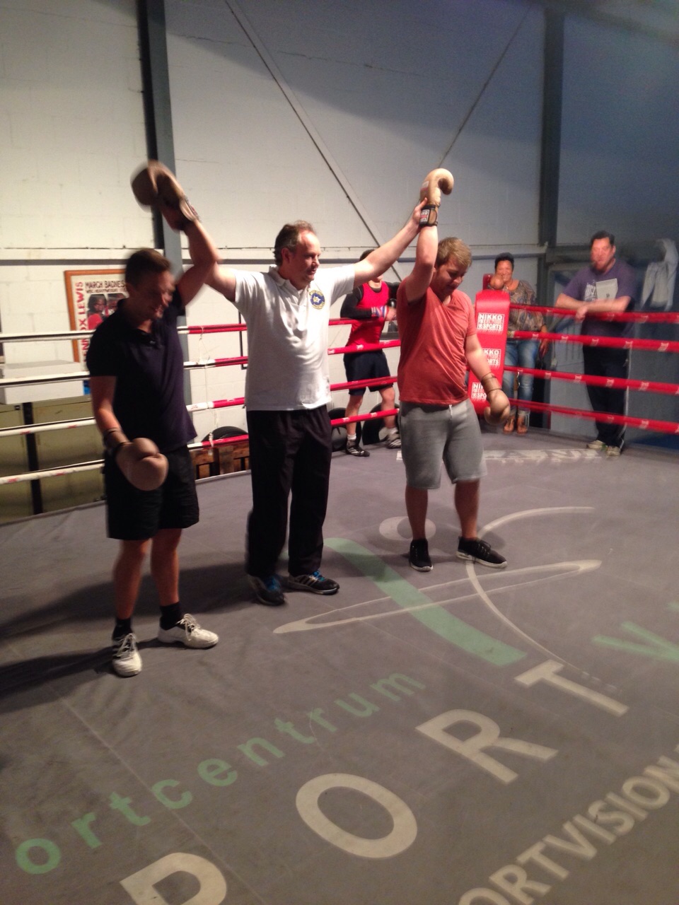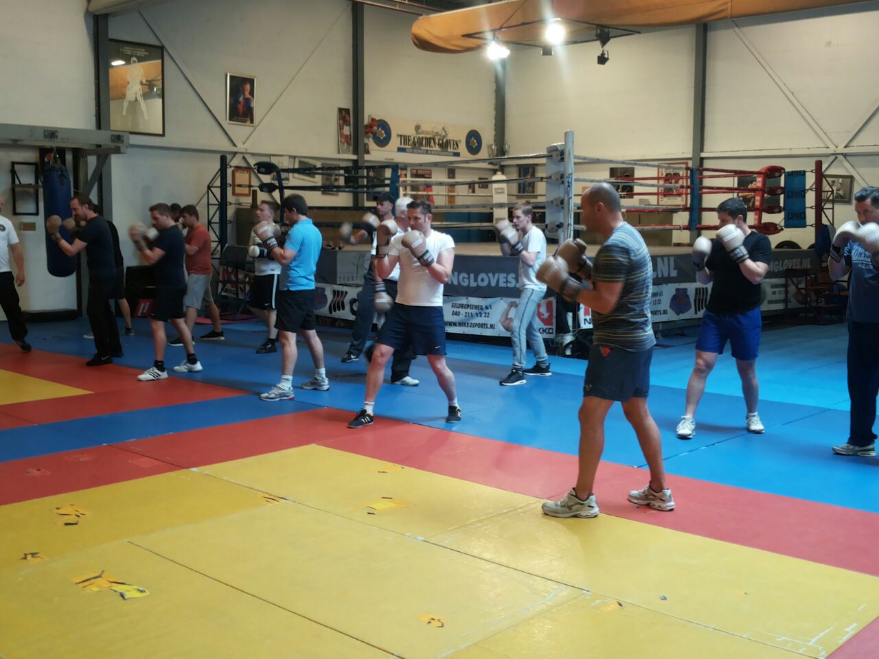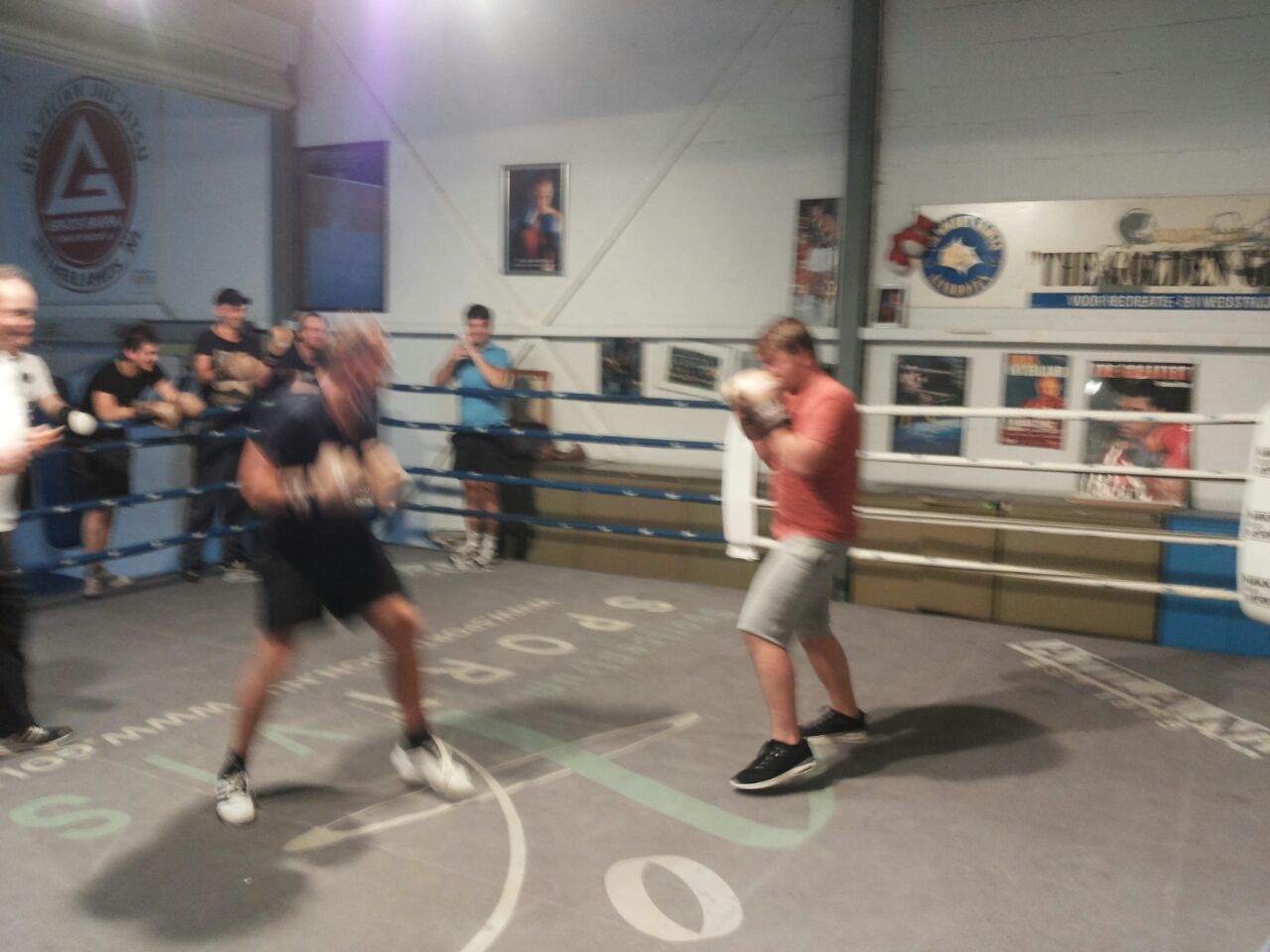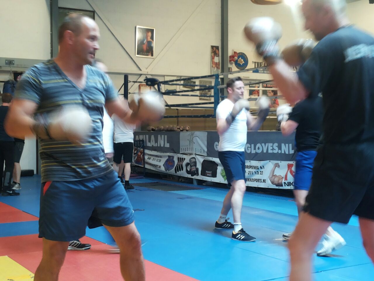 ‘De clinic was super. Na een warming up gedaan te hebben, gingen we van start met wat boksstoten. Ook van belang hierbij was de verdediging. Best pittig zo’n clinic. Zeker als je niks meer aan sport doet, behalve biljarten en darten. Zeker het rondje in de boksring was best wel zwaar. Desondanks kan er toch maar 1 winnaar uit deze dag komen. Ik ‘