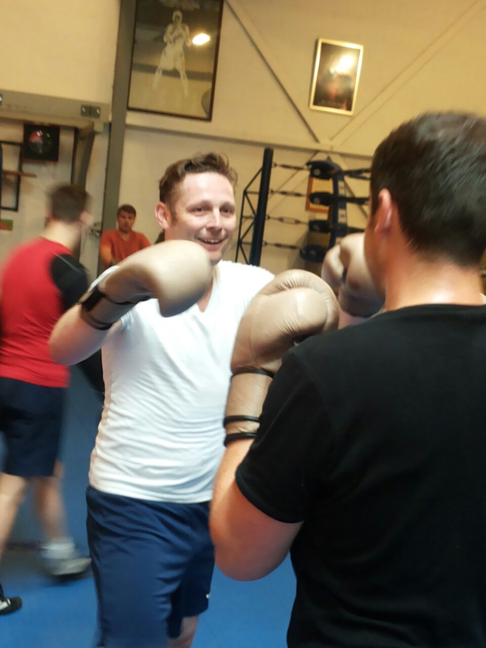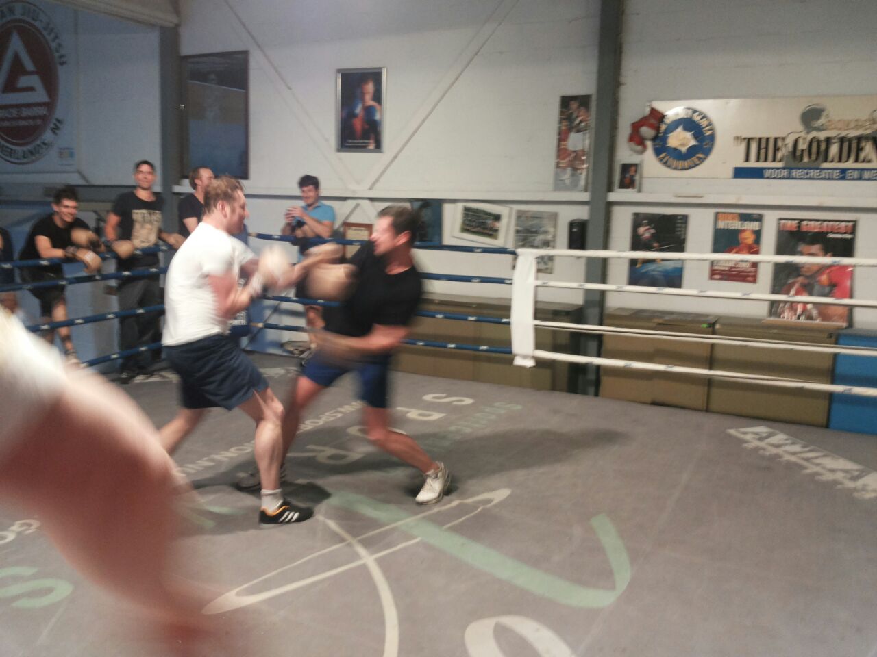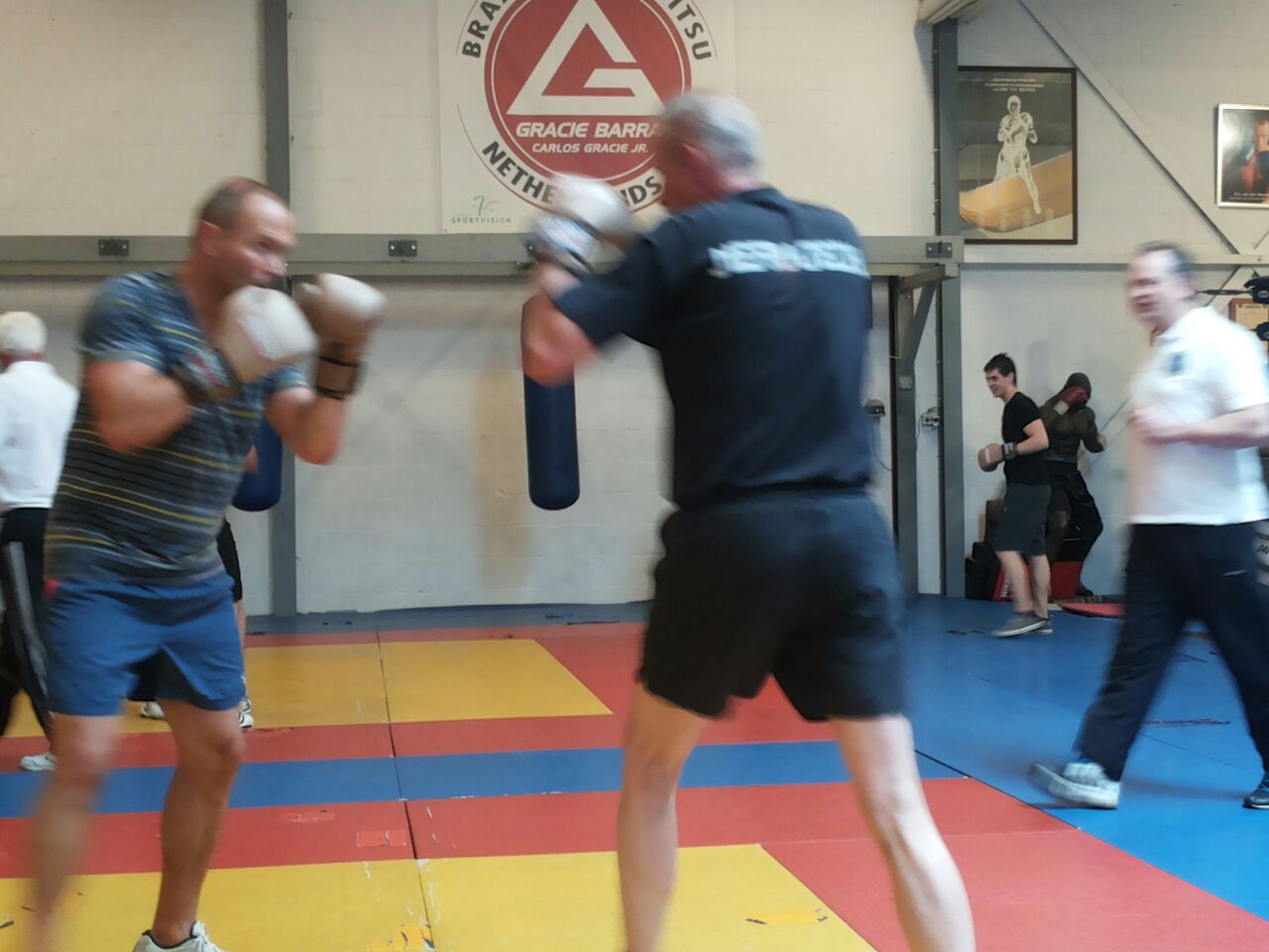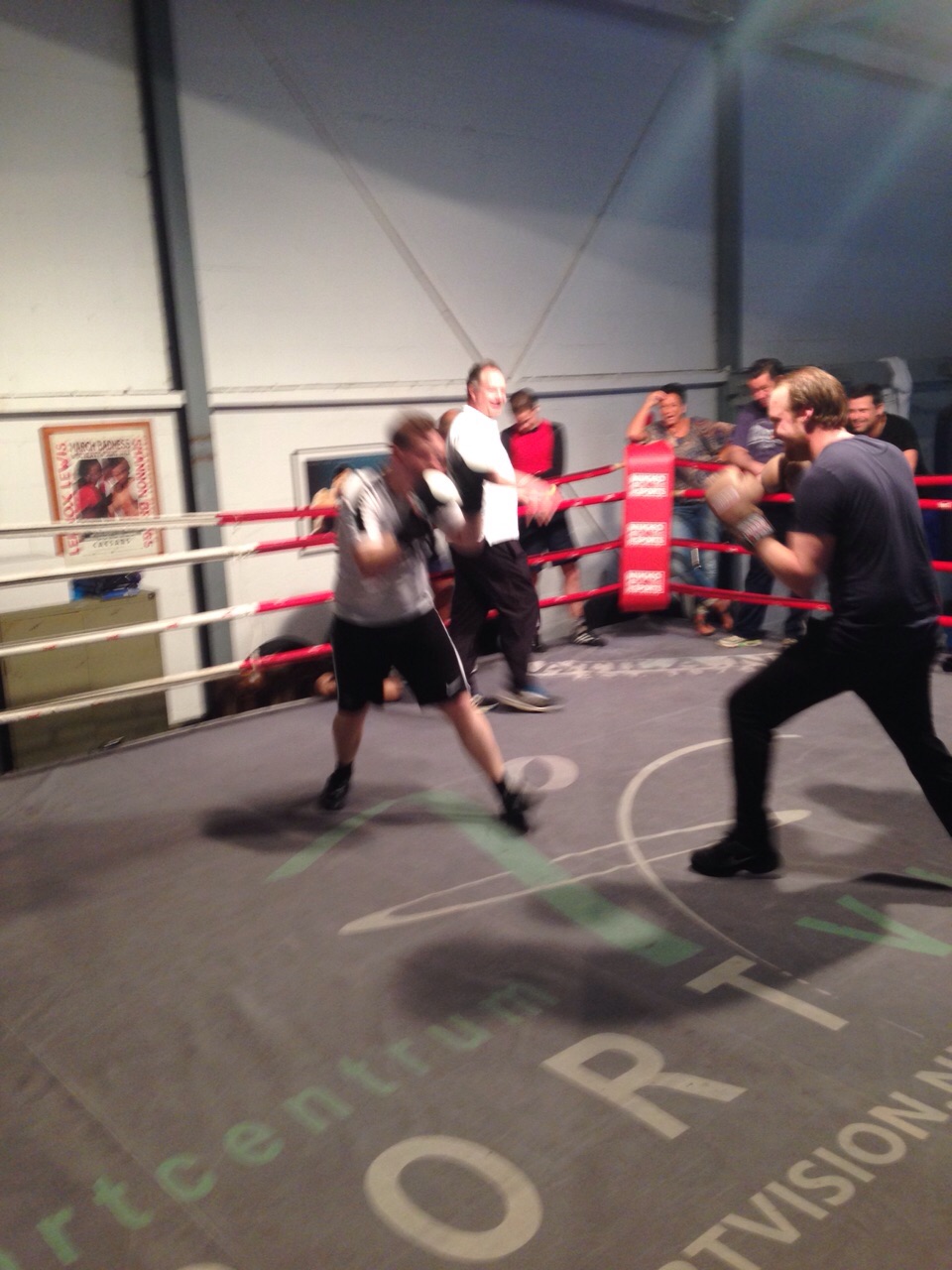 ‘De clinic was super. Na een warming up gedaan te hebben, gingen we van start met wat boksstoten. Ook van belang hierbij was de verdediging. Best pittig zo’n clinic. Zeker als je niks meer aan sport doet, behalve biljarten en darten. Zeker het rondje in de boksring was best wel zwaar. Desondanks kan er toch maar 1 winnaar uit deze dag komen. Ik ‘